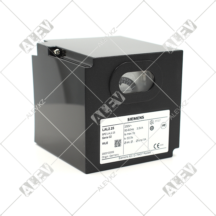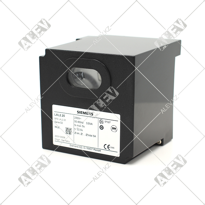 Siemens LAL2.25 является блоком управления промышленных горелочных устройств. Находит применение для горелок на жидком топливе работающих под наддувом. Контролирует давление воздуха через датчик давления. Наличие процесса сгорания топлива осуществляется через датчики: QRB1, QRC1. Управляет всеми исполнительными механизмами. Проверка датчиков происходит в автоматическом режиме. Электромеханический блок горения LAL 2.25 подключается через разъемную плату. Данный автомат оснащается плавким сменным предохранителем для защиты цепей. С прерываемым принципом функционирования (одно управляемое выключение каждые 24 часа) Широкое применение для многоступенчатых или модулируемых горелочных устройств. Индикатор отключения, аварийная лампа «ошибка» и кнопка «перезагрузка» находиться в смотровом окошке оборудования.