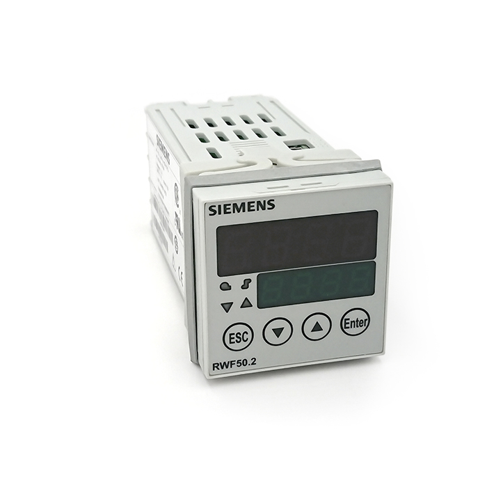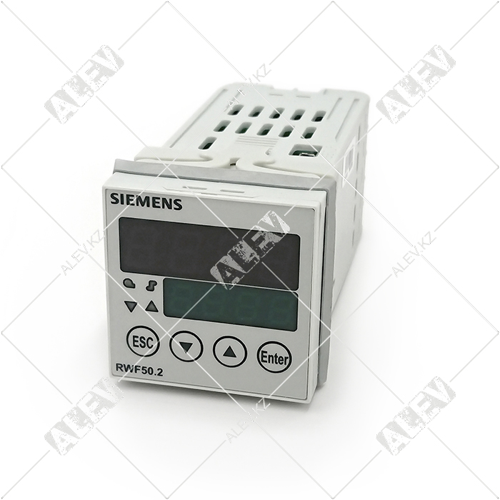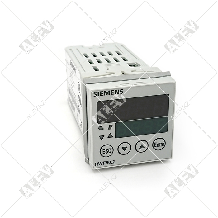 Siemens RWF50.20A9 представляет собой универсальный контроллер использующийся в сферах отопления, вентиляции и в составе комплекса управления котлами на разнообразных видах топлива. RWF 50.20A9 может работать совместно с автоматами горения Siemens. На лицевой панели расположены два четырехразрядных дисплея отображающие текущих и заданных значений параметров и клавиши ввода. Устанавливается в передние панели шкафов управления. Сам контроллер имеет возможность работы как PID регулятор в модулируемом режиме работы.