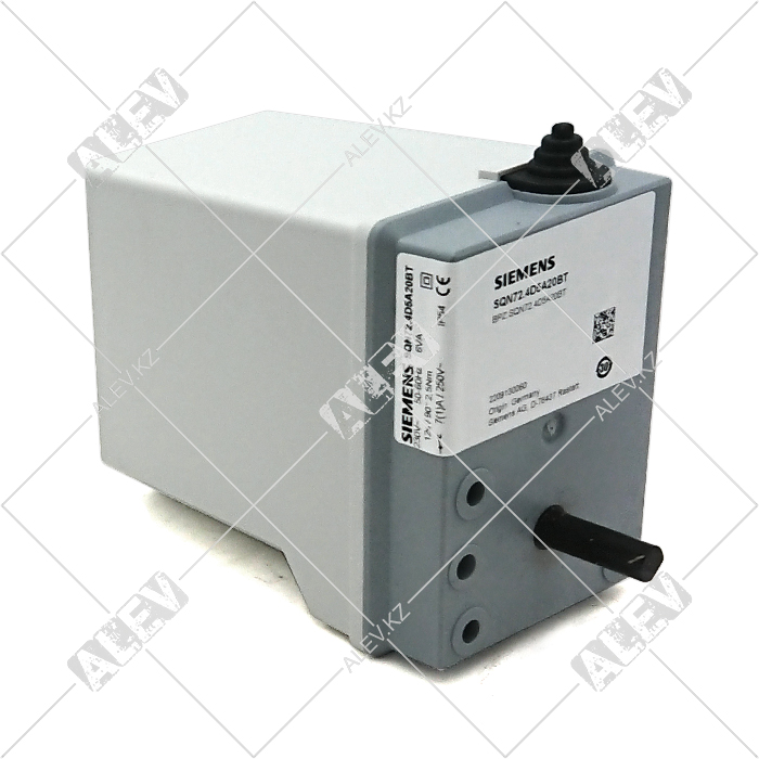 Сервопривод SIEMENS SQN72.4D5A20BT (артикул 0005040227-BT) успешно применяется в отопительных системах в составе горелочных устройств BALTUR малых и средних мощностей с целью регулирования положения воздушной заслонки для контроля оптимальной концентрации топлива и воздуха для горения. Изготовленный из ударо- и термостойкого пластика корпус включает в себя защищенный от блокировки реверсивный синхронный двигатель, который управляет ведущим валом сервопривода, переключатели, кулачковый вал управления, шкалу для настройки точки переключения. Рабочее напряжение 230 В, 50/60 Гц, потребляемая мощность 6 ВА, крутящий момент 2,5 Нм, время открытия заслонки на 90° 12 с, степень электрозащиты IP54.